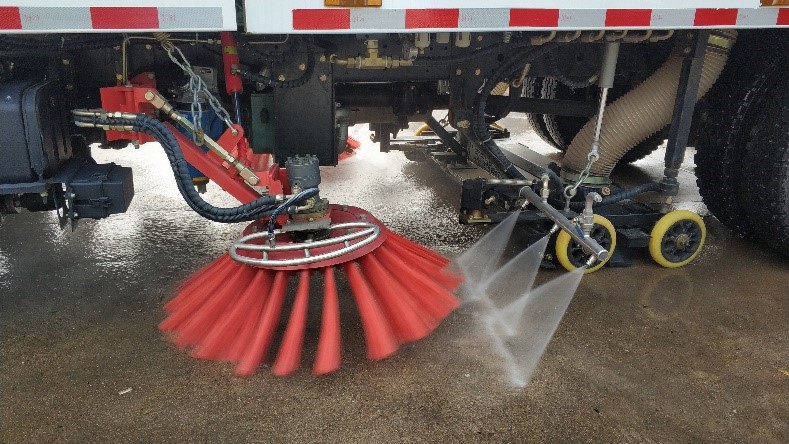 ![]() | 驾驶室后下方标配低压前冲,由低压水泵 产生的水流,可以像洒水车一样对路面进行大 面积冲洗,冲洗宽度可达16米。 |