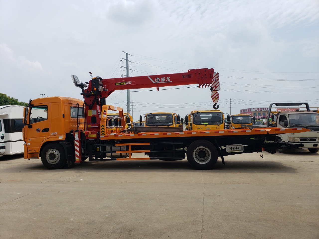 上装配置:板长6.8米,宽2.55米,平板10吨上装,5mm花纹板,边框50*150(可选配实心钢板),滑道10个厚,加厚双副架,后托可做主梁承载10吨三节臂,10吨液压卷扬,双侧联动装置,意德利海德多路阀,叉具一套,其余标配。