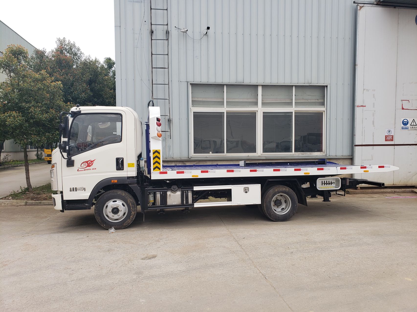 半落地式上装,采用一次成型冲压板制后拖板,配四吨液压卷扬机一部,25米钢丝绳,双侧联动操作装置,两节四边形后托臂,配**小车一对,L型托叉,一对旋转筒一对,工具箱一个,捆绑器四个,其他公司标配
