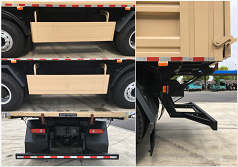 1.自卸方式为后卸式;2.左右侧面防护装置材料为Q235,连接方式为螺栓连接;后防护装置材料为Q235,断面尺寸为120×60mm,离地高度为490mm,连接方式为螺栓连接;3.该车使用磷酸铁锂锂离子动力蓄电池,储能装置单体电池型号:CB240,生产企业:宁德时代新能源科技股份有限公司;成箱后的储能装置型号:L302C01,生产企业:宁德时代新能源科技股份有限公司;4.驱动电机有两种配置,型号:TZ388XSSFE01, 额定功率/峰值功率:250KW/360kW,生产企业:陕西法士特齿轮有限责任公司;型号:TZ368XS-YBM107, 额定功率/峰值功率:280KW/380kW,生产企业: 南京越博动力系统股份有限公司;5.ABS型号/生产厂家:CM4XL-4S/4M/广州瑞立科密汽车电子股份有限公司;6.装有卫星定位功能的行驶记录仪.