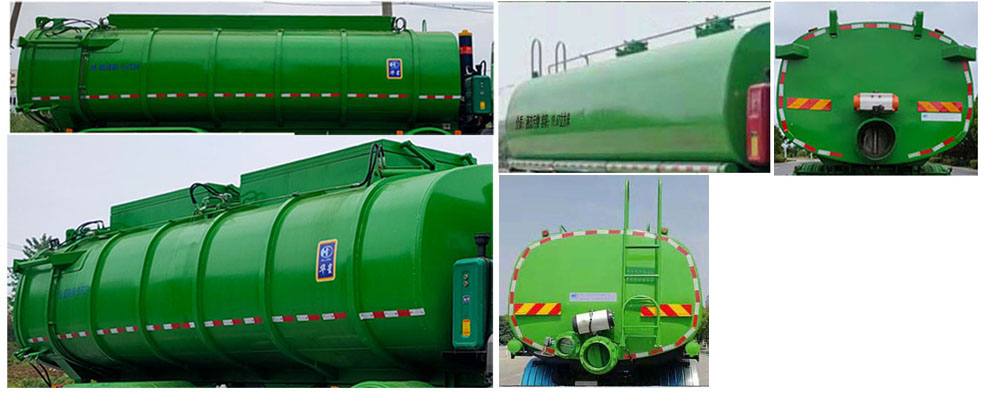 | 介质:液态污物;罐体总容量:19.67立方米,罐体有效容积:18.73立方米,**密度:800千克/立方米,罐体外形尺寸(长×宽×高)(mm):7400×2380×1700;仅采用轴距(mm):1800+3975+1400;侧、后防护材料均为:Q235,连接方式均为螺栓连接,后防护截面尺寸(mm):120×50,下边缘离地高度490mm;安装具有卫星定位功能的行驶记录仪;选装直接供电式ETC车载装置;随底盘选装同系列驾驶室外观,选装上车踏板,选装后视镜,选装进气扁管外观,选装消声器外壳,选装前部组合灯具和保险杠.选装车身侧面及后面不同外观.ABS系统生产厂家及型号分别为:西安正昌电子股份有限公司(ZQFB-V);仅采用WP10H400E62,WP10H375E62发动机,油耗值(L/100km)为37.18,37.18.自卸方式为后卸式. | |||