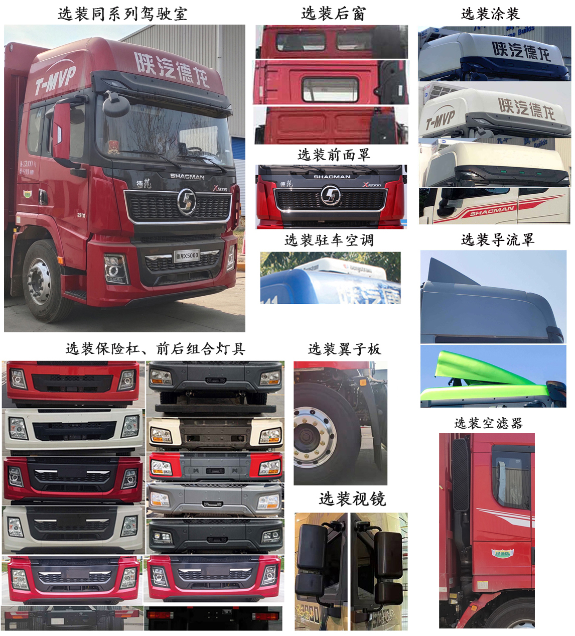 | 1,选装同系列驾驶室,保险杠,面罩外观,驾驶室后窗,翼子板,后视镜,前后组合灯具,驻车空调及空滤器外观,选装驾驶室两侧"SHACMAN"字样,货箱底板到仓栅顶部高度(mm)为:2500,2550,2600,2650,2700.可选装双油箱布置;选装后处理布置位置及外观(可位于**、二轴之间).2,侧后防护所用材料:Q235;连接方式:螺栓连接;选装圆形后防护时,断面宽度(mm):Φ120,选装方形后防护时,断面宽度(mm):50×120;后防护离地高度(mm):500.3,ABS装置生产厂家及型号:广州瑞立科密汽车电子股份有限公司(CM4XL-6S/6M).4,该车装有带卫星定位功能的行驶记录仪.5,装WP10H400E62发动机时油耗申报值为38.4L/100km,装WP12.490E62发动机时油耗申报值为37.5L/100km.装X12NS6B490、X12NS6B470、X12NS6B440、X12NS6B400发动机时油耗申报值为36.0L/100km,装WP11S460E68发动机时油耗申报值为35.1L/100km.6,第四轴为随动轴,随动轴不可提升.7,可选装ETC车载装置. | |||