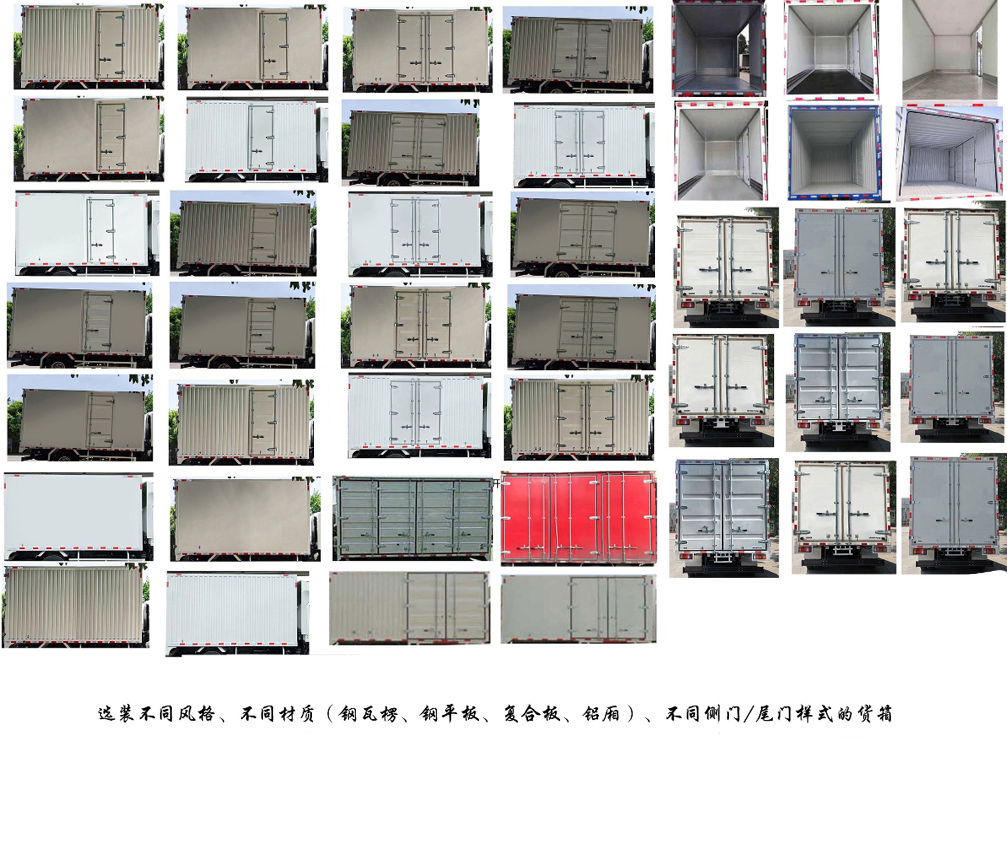 | 1、该车选装发动机,装4KK1N6LB型发动机时,净功率为87kW,VIN为LWLDMMVG×××××××××,油耗申报值11.3L/100km,装4KK1N6SD型发动机时,净功率为95kW,VIN为LWLDMMYG×××××××××,油耗申报值11.3L/100km;2、侧防护材料:钢板 Q235,连接方式:用螺栓连接在车厢横梁上;后防护材料:钢板Q235,板厚2.0mm,连接方式:后防护支架以螺栓连接在车架纵梁尾端,后防护断面尺寸:139×52(mm),离地高度:460mm;3、该整车选装制动系统:装液压制动系统时,ABS及其**器型号/生产企业对应关系为:APG3550500A/浙江亚太机电股份有限公司,CM4YL/广州瑞立科密汽车电子股份有限公司;装气压制动系统时,ABS及其**器型号/生产企业对应关系为:CM4XL-4S/4M/广州瑞立科密汽车电子股份有限公司;4、货箱顶部封闭不可开启;5、该车随底盘选装:镀铬角板、格栅,驾驶室后围盲窗,加宽轮眉,不同造型风格、不同材质(铝/铁)轮辋,无备胎,选装"KV100/M100"标牌;6、该车选装带原型导流罩、新型导流罩,货箱选装单侧单开门、单侧四开门,单侧无开门,选装钢/铝平板、复合板厢体,选装排半驾驶室;7、该车型可选装ETC车载装置。8、选装燃油箱、尿素箱、蓄电池位置;9、整备质量不包括备胎、灭火器、随车工具等;货厢重量610,689,592,642,587,574,664,622(kg),侧板材质为HC500/PP板/5052铝板,侧板厚度0.7mm,1.4mm,20mm,底板材质为花纹钢板/竹木胶合底板,底板厚度1.8/12mm,1.8/15mm。 | |||