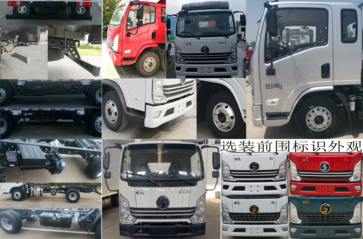 | ABS系统生产厂家及型号为:广州瑞立科密汽车电子股份有限公司(型号:CM4XL-4S/4M).车厢顶部封闭,不可开启.侧防护材料铝合金6005-T5,后防护材料铝合金6061-T6;左右侧及后防护均采用螺栓连接;后部防护断面尺寸(mm):100×50,后防护离地高度(mm):400,425,440,480.可选装排半驾驶室.可不选导流罩.选装装多种形式的货箱,选装货箱单侧或者两侧不/单/双/三/四开门,选装不同样式(瓦楞/平板)和不同材质(铝合金/钢/钢铝/不锈钢/彩钢板/复合板/蜂窝板等)的货厢,选装不同地板:花纹/瓦楞/竹胶/复合木板.选装不同风格的货箱侧开门样式.选装不同材质及风格的轮辋,可取消前雾灯.选装不同风格的后视镜安装支架,选装不同外观的后视镜.可随底盘选装不同材质的内置储气筒,随底盘选装不同安装位置的启动蓄电池,选装取消前下视镜.可选装无备胎.可选装不同外观风格的驾驶室前围及格栅,选装不同外观风格的轮眉.外形尺寸宽不大于2100mm时,可选装取消前、后示廓灯.可选装不同风格的导流罩,选装不同材质及安装位置的燃油箱.选装前下视镜支架外观,选装驾驶室侧面装饰.选装不同外观的后部组合灯具.选装LOGO标识外观颜色,选装前围标识外观颜色.可选装钢质后防护装置,材料:Q34**.连接方式:螺栓连接,后部防护断面尺寸(mm):100×50.可选装钢质侧防护装置,材料:Q23**,左右两侧侧防护均采用螺栓连接.发动机**净功率为:D25TCIF1(105KW),D20TCIF12(85KW).发动机/油耗(L/100km)关系:D25TCIF1/11.4,D20TCIF12/11.4.该车型可选装车载ETC装置.货厢重量(Kg):530,侧板材质/厚度(mm):铝合金/1.0,底板材质/厚度(mm):铝合金/1.8;货厢重量(Kg):550,侧板材质/厚度(mm):420LA/0.7,底板材质/厚度(mm):铝合金/1.8;货厢重量(Kg):540,侧板材质/厚度(mm):蜂窝板/20,底板材质/厚度(mm):复合木板/12;货厢重量(Kg):650,侧板材质/厚度(mm):420LA/0.7,底板材质/厚度(mm):380LA/1.0;货厢重量(Kg):600(2800轴距),645(3300轴距排半),690(3300轴距单排),侧板材质/厚度(mm):420LA/0.7,底板材质/厚度(mm):Q235/2.0,整备质量不包含备胎、灭火器、随车工具、停车楔. | |||