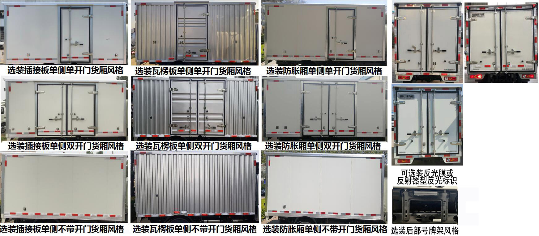 | 货厢顶部封闭,不可开启.发动机LJ469Q-AEC对应的油耗值为7.4L/100km.ABS系统**器型号是YF9,ABS系统**器生产企业是武汉元丰汽车电控系统有限公司.选装不带前雾灯,选装带导流罩.选装货厢风格,选装侧单开门风格货厢,选装无侧开门风格货厢,选装侧双开门风格货厢.选装反射器型反光标识.选装前围及前覆盖件,选装带雾灯不带昼行灯,选装不带雾灯不带昼行灯,该车型可选装ETC车载装置.该车型整备质量包含备胎、随车工具,不包含灭火器、标准工具箱.货箱重量为340kg,货箱底板材质为Q235,厚度为2mm(防滑板);货箱边板材质为Q235(瓦楞板)、Q235+聚氨酯(插接板),厚度为1mm(瓦楞板)、40mm(插接板). | |||