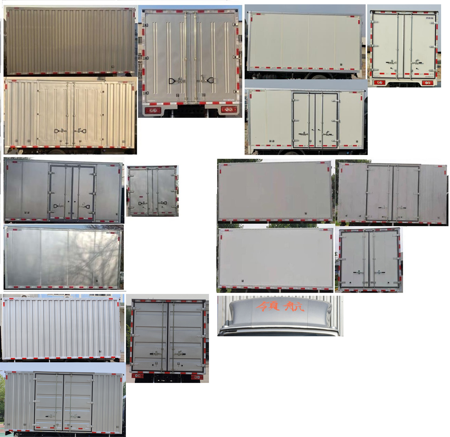 | 货厢顶部封闭不可开启.发动机H20-120E60对应油耗值为11.4L/100km.ABS型号:CM4XL-4S/4M;ABS生产企业:广州瑞立科密汽车电子股份有限公司.侧面及后下部防护装置所用材料材质为Q235,连接方式为螺栓连接;后部防护装置的断面尺寸为100mm×50mm,离地高度为430mm,450mm,460mm,480mm.选装侧/后防护栏材料材质为:铝合金6061,连接方式为螺栓连接;后防护断面尺寸为100×50mm,离地高度为430mm,450mm,460mm,480mm.选装货厢风格,选装带导流罩.选装新款前格栅风格,选装铝制轮辋,选装燃油箱外观.该车型整备质量包含随车工具,不包含灭火器、备胎、标准工具箱.货箱重量655kg,底板材质为Q235,厚度为2.0mm,边板材质为Q235、聚苯乙烯+Q235,厚度分别为2.0mm、40mm. | |||