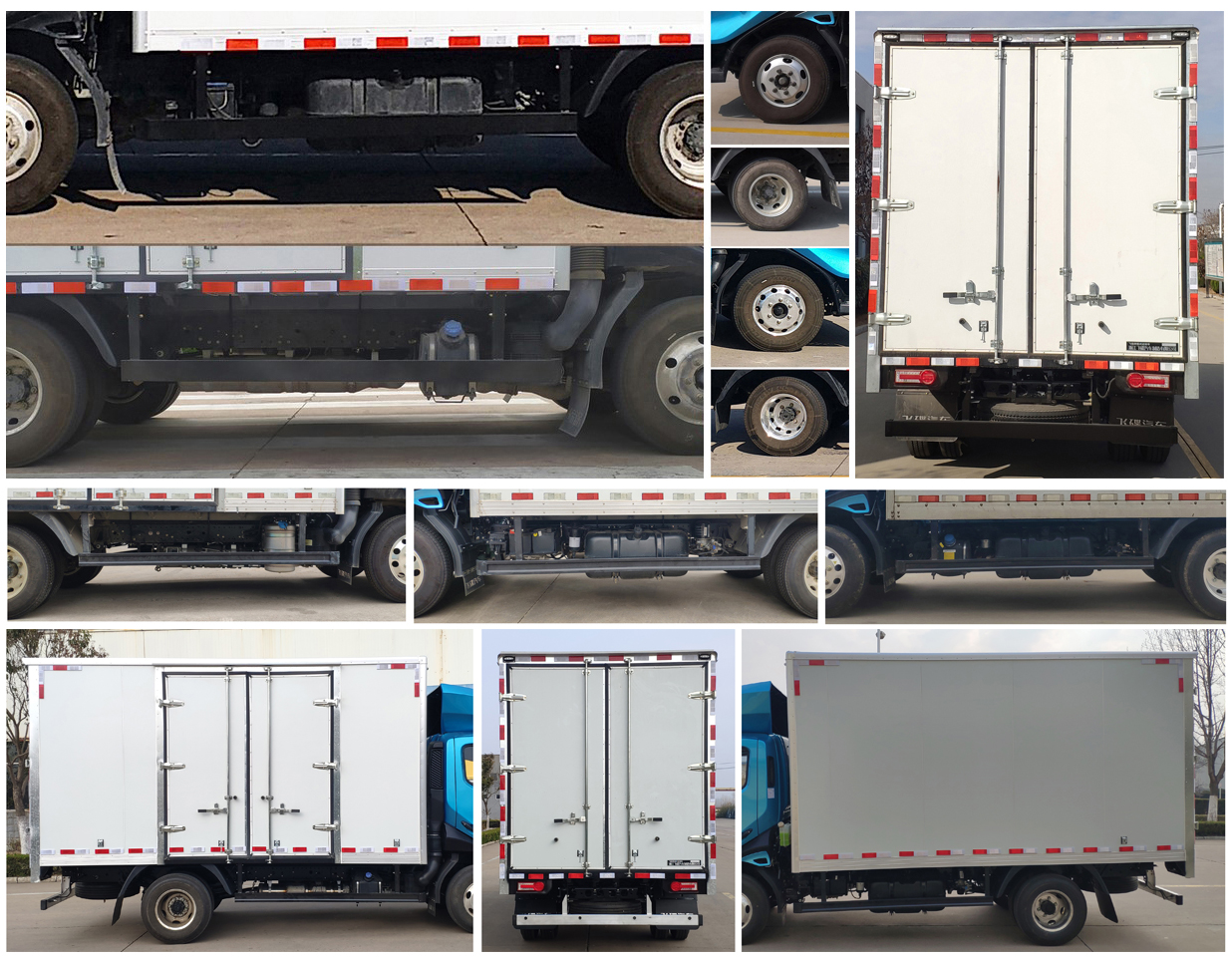 | 货厢顶部封闭不可开启;ABS型号/生产厂家对应关系:446 004 XXX 0/威伯科汽车**系统(**)有限公司,VIE ABS-II/浙江万安科技股份有限公司,ABS8.8 ECU 24V/东科克诺尔商用车制动系统(十堰)有限公司,ABS-VI·E/广州瑞立科密汽车电子股份有限公司;侧面防护装置材料为Q23**,连接方式为螺栓连接;后部防护装置材料为Q23**/铝合金/塑料,连接方式为螺栓连接,后部防护装置断面尺寸(高×宽)为100×50,选装圆柱型后防护装置,截面尺寸Φ114,离地高度为410/430/450/470;发动机/油耗值(L/100km)对应关系:D25TCIF1/11.2,D25Pro/11.4,WP2.3NQ130E61/11.4,CA4DB1-13E6/11.3,F2.5NS6B160/11.4;尺寸对应关系(车长/前悬/轴距/后悬):5995/1110/3360/1525,5989/1110/3360/1519;尺寸单位mm;选装描述:选装遮阳罩,选装导流罩,选装视镜风格,选装货厢风格,选装尿素罐位置,选装铝合金尿素罐,选装塑料燃油箱,选装侧防护风格,选装铝合金轮辋,选装Q23**材质/塑料后防护,选装不带倒车雷达,该车型可选装ETC车载装置,选装无备胎.选装尾板,尾板质量为350kg,尾板收起的水平长度为280/185;整备质量含备胎,不含随车工具,灭火器.货厢重量:550kg,货厢材质Q235/挤塑板,厚度1.0,1.5,1.8,2.0/20,40;所有尺寸单位mm. | |||