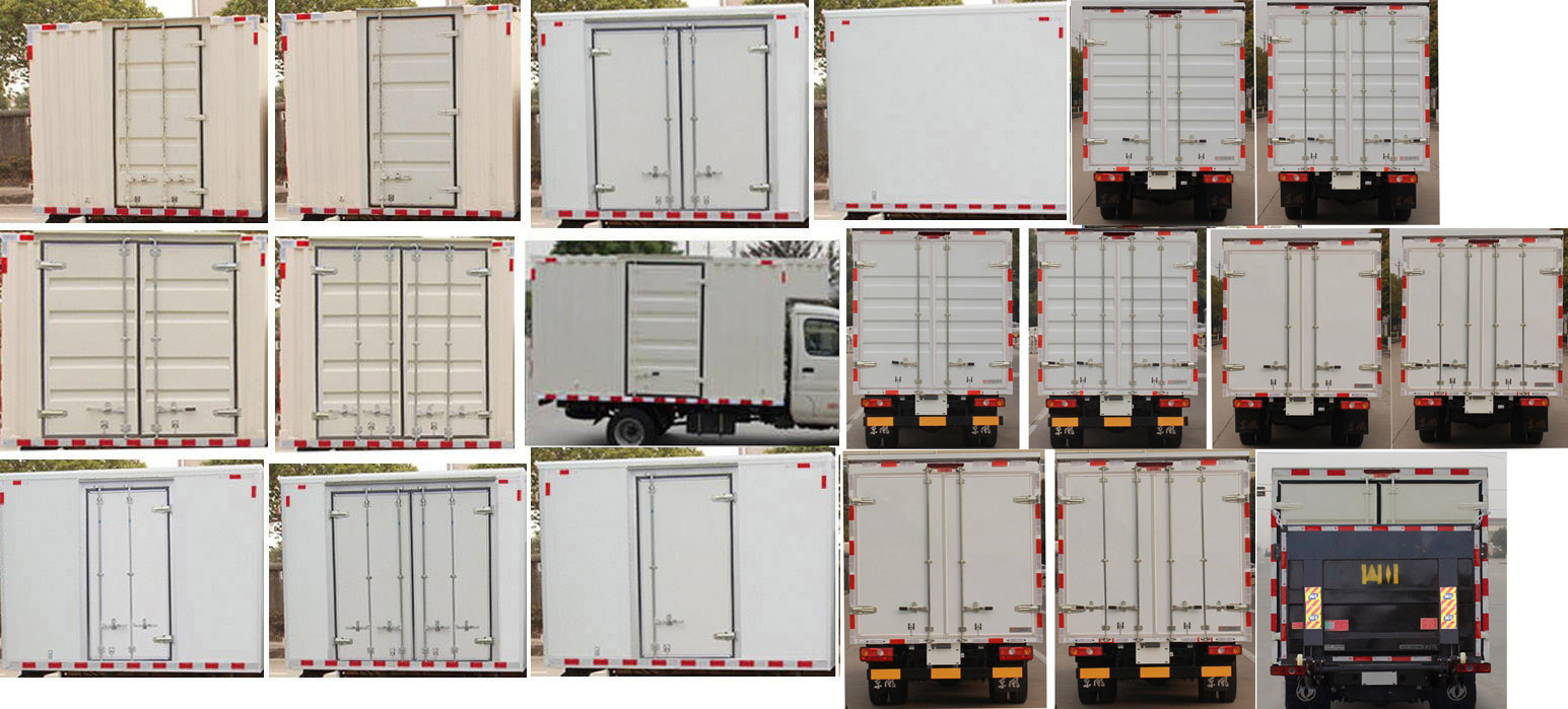 | 随底盘选装黑色保险杠,选装前后组合灯具,前保险杠及前格栅,后视镜,ABS型号/生产厂家:1.APG3550500A/浙江亚太机电股份有限公司,2.YC-ABS260/天津英创汇智汽车技术有限公司,3.CM4YL/广州瑞立科密汽车电子股份有限公司.车厢顶部封闭不可开启,选装导流罩和侧门及探头,厢体材质可为瓦楞或平板,侧门可为单侧门或双侧门.选装液压尾板,收起状态的水平长度为190mm,液压尾板质量为200kg,装配液压尾板时不装后防护.尺寸对应关系:(长=轴距+前悬+后悬)1.5450=2850+1120+1480,2.5150=2600+1120+1430,3.4850=2600+1120+1130,4.5995=3180+1200+1615,5.5675=2900+1200+1575,6.5610=3600+545+1465,7.5205=3300+545/1360,8.5860=3180+1130+1550,9.5645=3600+580+1465,10.5240=3300+580+1360;随底盘选装油箱左右安装位置.选装侧后防.发动机/油耗值对应关系为: LJ4A15Q6/8.28,LJ4A16QG/7.6(L/100km).该车型可选装ETC车载装置.雾灯为选装件,整备质量不包含备胎,随车工具及灭火器重量.货箱底板材质为:Q235,货箱底板板材厚度为1.8mm,货箱前板、后门、侧板、侧门、顶盖板材质为:W280VK,材料厚度为0.8mm,货箱重量为500kg. | |||