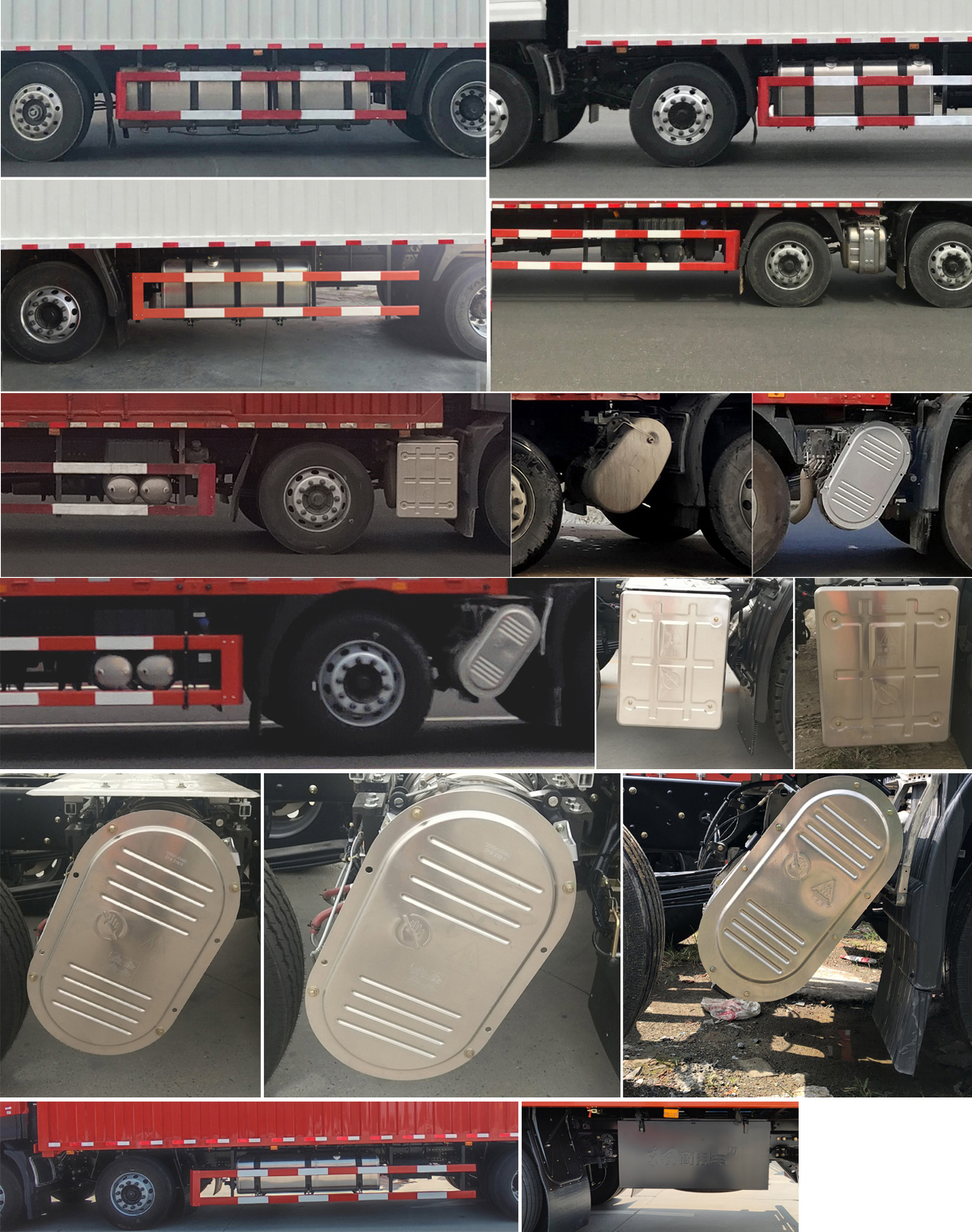 | 随底盘选装仅高度不同的驾驶室,高顶驾驶室顶部气喇叭为选装件,驾驶室前角扰流板为选装件,选装驾驶室前面罩,选装驾驶室顶部"东风商用车"企业标识,选装驾驶室外部图案,选装仅颜色不同的后视镜,选装AEBS摄像头和雷达面罩,选装车门外形,选装顶置空调;选装单油箱,双油箱或双腔油箱;选装后处理外形和后处理隔热板;选装驻车空调电瓶;选装不同材质储气筒,选装工具箱;车厢顶部封闭,不可开启,侧面选装单开门,双开门,三开门和不开门,车厢右侧选装侧开中门,侧开后门,车厢内部选装专用货架,用于运输汽车座椅,厢体选装平面和瓦楞板结构,选装后门结构和二级踏步,选装起重尾板,尾板质量为550kg,尾板收起状态的水平长度为295mm,选用断面尺寸Φ121的后防护,后防护材质Q235,连接方式焊接,离地高度470mm;选装后踏步;侧防护:材质Q235,连接方式螺栓连接.后下防护:材质Q235、DL510,连接方式螺栓连接,断面尺寸120×60mm、120×80mm,离地高度480mm、460mm、440mm;应装有具备卫星定位功能的行驶记录仪;ABS型号/生产厂家:ABS 8/东科克诺尔商用车制动系统(十堰)有限公司;选装限速装置,限速89km/h;发动机DDi75E350-60对应油耗申报值32.0L/100km,发动机DDi75E300-60对应油耗申报值32.0L/100km,发动机DDi75E260-60对应油耗申报值32.0L/100km,发动机DDi75E340-60对应油耗申报值32.0L/100km. | |||