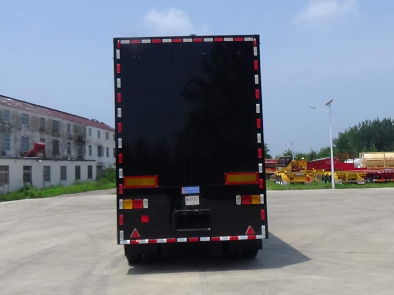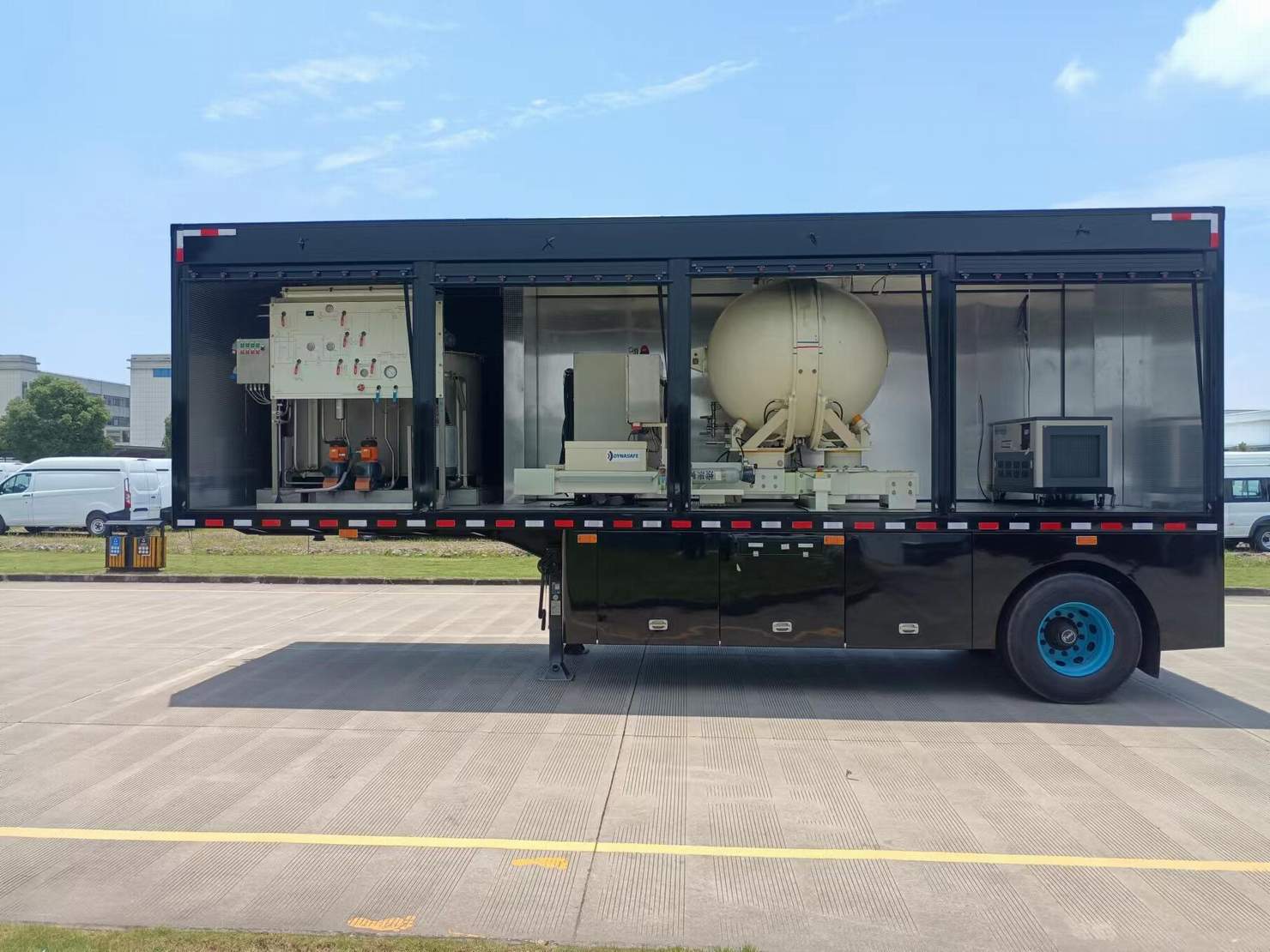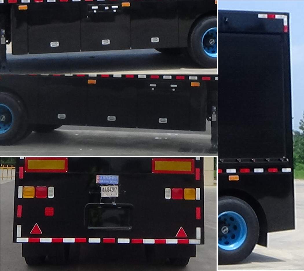 | 车厢顶部封闭不可开启;ABS厂家/型号为:威伯科(上海)管理有限公司/4005000880;侧防护及后防护为裙边结构,侧防护及后防护材料均为Q235,后防护裙边离地距离490mm;专用装置:爆炸污染物辐射检测系统、智能搬运机器人、汽油四缸发电机组等 | |||