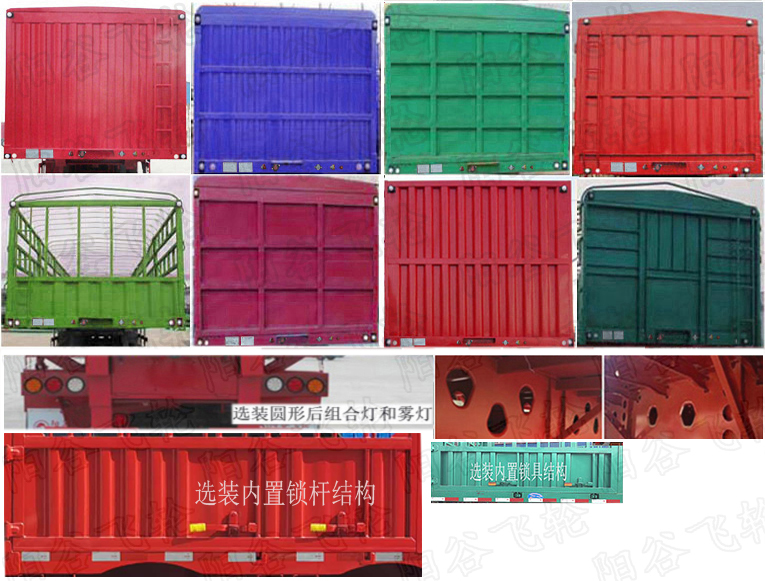 | 车厢底板**仓栅顶部高度为1800mm(3050mm,3100mm),2000mm(3250mm,3300mm).该车悬架型式为空气悬架,棚杆焊死不可拆卸.整车货厢栏板选装竖瓦楞,方管平板,平板十字花交叉样式,方管十字花样式;整车各种仓栅样式选装二层,三层,上下层仓栅可;选装对开门长锁杆或短锁杆,内置锁杆结构,每扇门选装2根或3根锁杆;后部选装花栏式后门,三开扇后门,对开半封闭后门,对开全封闭样式为横瓦楞,竖瓦楞,方管平板,方管十字花平板后门;选装前挡板样式,选装半封闭前挡板,选装前挡板中间横加1根或2根方管,侧面选装四开门,五开门;选装圆形立柱结构;选装侧面样式,选装前挡板样式,选装后部样式,选装花栏样式;选装内置锁杆结构;选装大梁孔结构;选装圆形尾灯和雾灯;选装工具箱.选装前立柱样式.ABS系统生产企业/型号:广州瑞立科密汽车电子股份有限公司/CM2XL-4S/2M,山东顺安达汽车科技股份有限公司/SHUNANDA-4S/4M;侧面防护装置的材质为Q235或铝合金5083,侧面防护装置材质为Q235时与车身连接方式为焊接或螺栓连接,侧面防护装置材质为铝合金5083时与车身连接方式为螺栓连接;后下部防护装置的材质为Q235,与车身连接方式为焊接连接;后防护装置的断面尺寸为140mm×60mm,离地高度为490mm. | |||