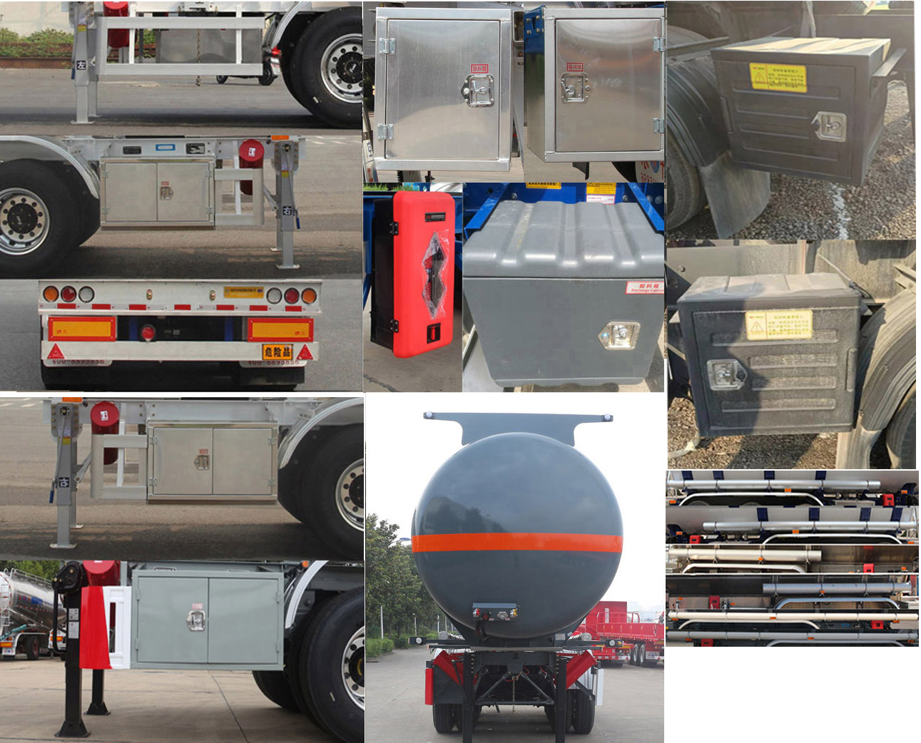 | 该车罐体尺寸(长x直径)( mm): 9830×1909.罐体有效容积为25.5立方米. 罐体总容量为26.4立方米. 该车为危险货物运输车辆;危险品车辆类型为AT型;准运介质的**密度为1310千克/立方米.该车悬架形式为非**式空气悬架.选装罐顶走道及升降扶手结构,选装示廓灯支架结构,选装挡泥板结构,选装灭火器样式,选装后尾左右操作箱结构,选装侧防护结构.选装前部无爬梯结构.选装侧面胶管箱结构,选装侧防护和后下部防护(材质均为5083),连接方式均为螺栓连接.后下部防护断面尺寸为150mm×80mm,离地高度为460mm. ABS型号:400500XXX0,CM2XL-4S/2M,VIE-TABSⅡ(4S/2M);ABS生产企业:威伯科汽车**系统(**)有限公司,广州瑞立科密汽车电子股份有限公司,浙江万安科技股份有限公司;EBS型号:CM-TEBS;EBS生产企业:广州瑞立科密汽车电子股份有限公司;EBS型号:4801020640.EBS生产厂家:威伯科汽车**系统(**)有限公司.侧面及后下部防护装置所用材料材质为Q235,侧防护及后下部防护为螺栓连接.后下部防护断面尺寸为140mm×60mm,离地高度为460mm,采用适用于牵引危险品运输半挂车的牵引车. | |||