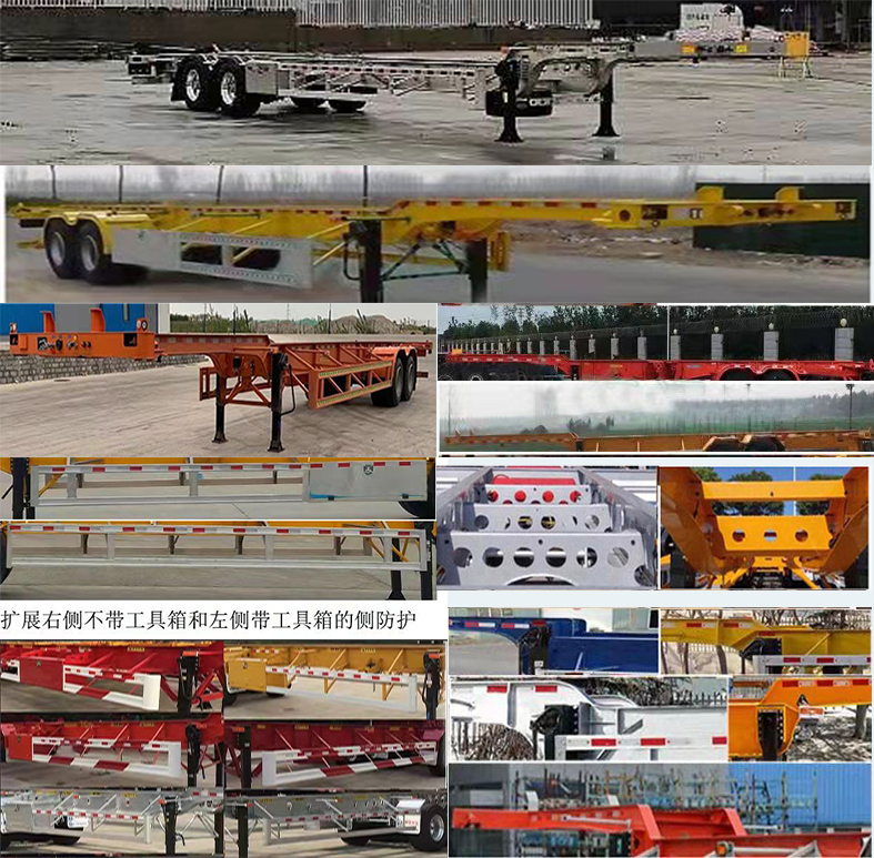 | 用于运输45英尺集装箱,该车为鹅颈结构;车辆前部选装装导向块或不装导向块,车辆高度随选装导向块的不同而变化,大梁腹板选装冲孔或不冲孔结构;选装前部结构;选装轮胎上方挡泥罩样式;选装侧面样式;选装前端梁倒角样式;安装混合悬架时,车辆**轴为可提升桥,仅允许空载状态下提升;选装号牌板样式,选装尾部标志板安装位置,选装后组合灯/雾灯为圆形结构;选装后部样式;选装侧面防护及工具箱样式;选装鹅颈处结构样式;牵引销处车架总高度(mm)为:210,190,180,170,150,140或120;侧防护材料为Q235,螺栓连接;后防护材料为Q235,焊接,断面尺寸为140mmX55mm,离地高度为470mm;ABS厂家及型号:广州瑞立科密汽车电子股份有限公司,CM2XL-4S/2M;车辆前横梁为倒角结构. | |||