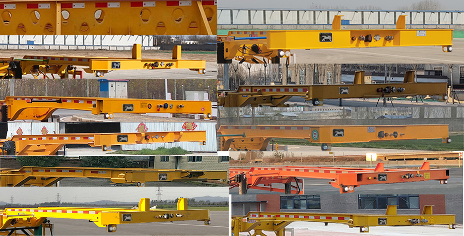 | 该车用于运输45英尺集装箱(1EE型),牵引销处车架高度为:210mm,牵引销处车架高度选装为200mm,190mm,180mm,160mm,140mm;选装不带导向块或带导向块样式;选装大梁异形孔结构;选装前部样式,选装前鹅颈样式,选装后部样式,选装号牌板样式,选装尾部标志板的安装位置,选装轮胎护瓦样式,后部选装一只或两只牌照灯,选装后组合灯方形/雾灯为圆形结构,一,ABS:型号:CM2XL-4S/2M;生产厂家:广州瑞立科密汽车电子股份有限公司;二,防护:侧、后防护材料均采用Q235,与车辆连接方式为焊接.后防:离地高度为500mm,断面为140mm×55mm | |||
