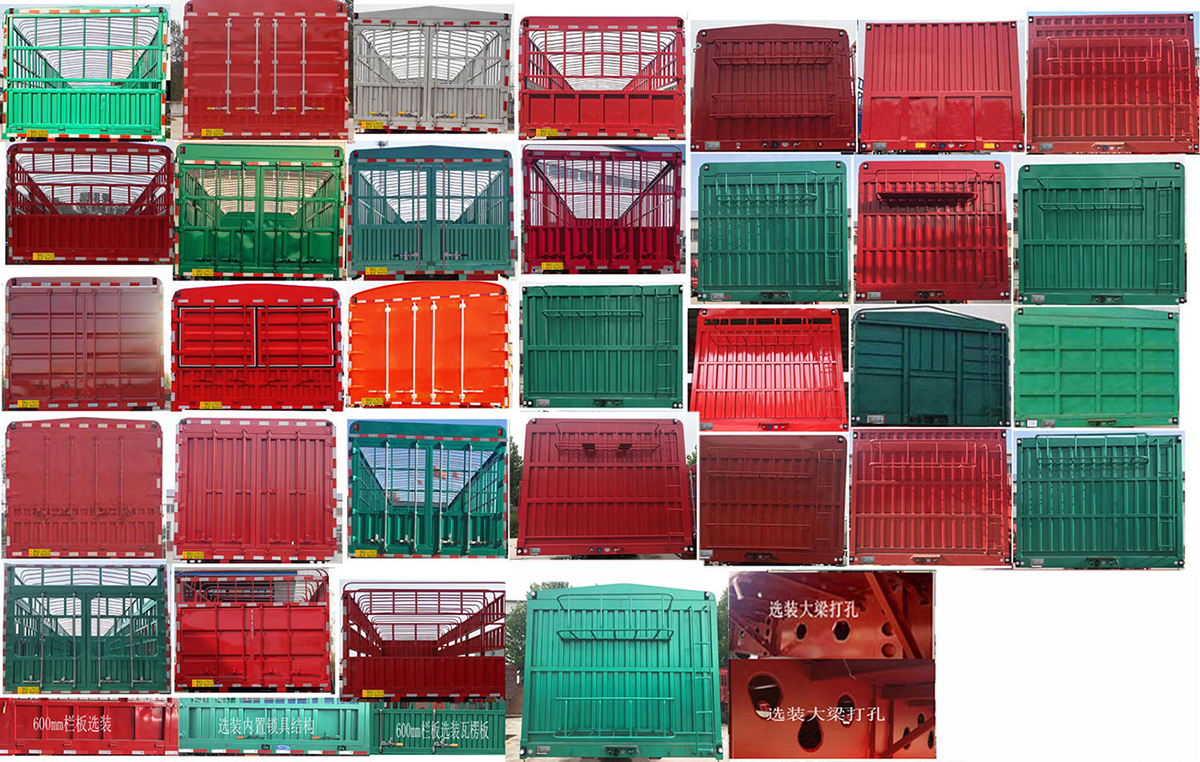 | 采用空气悬架,车厢底板**仓栅顶部的高度及对应总高度为1800mm(3350,3300),2000mm(3550mm,3500mm),2200mm(3750mm,3700mm),2400mm(3950mm,3900mm),选装前挡板样式;选装内置锁具,外置锁具;侧面选装四开、五开,立柱可选内插,外插样式;前挡立柱可选半圆形、抹角结构;选装弹簧把手;选装两层仓栅,三层仓栅,对开门仓栅样式;整车货厢栏板选装横瓦楞、竖瓦楞、方管平板、方管十字花平板后门,选装侧面箱板样式;选装花栏式后门,三开扇式后门,对开式半封闭后门,对开全封闭样式;选装整车厢板竖瓦楞;前后上弧板、前爬梯及前挡篷布框为选装部件,选装大梁异形孔样式,选装铝合金轮毂,选装后部样式;ABS生产企业:广州瑞立科密汽车电子股份有限公司.ABS型号:CM2XL-4S/2M;侧防护装置材料采用Q235B,与车辆连接方式为螺栓;后防护装置材料采用Q235B,与车辆连接方式为焊接;后防护截面尺寸:140mm×50mm,离地高度为480mm. | |||