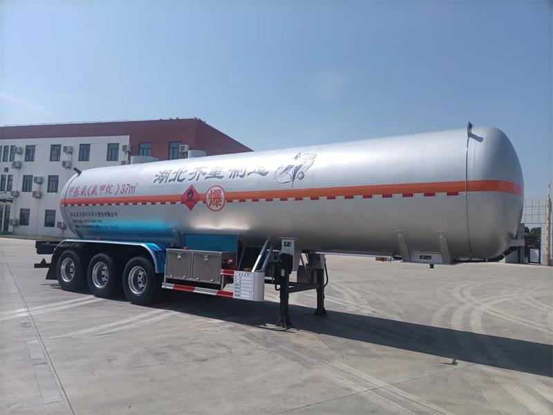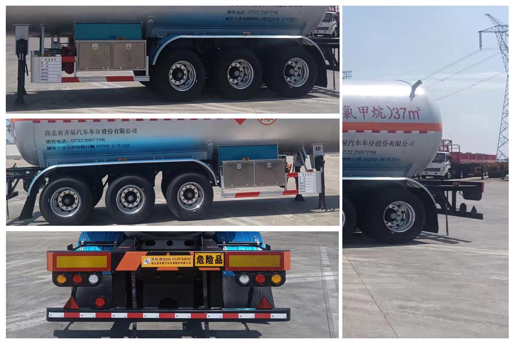 | 1.该车适用于危险品运输,运送危险货物车辆类型为:FL型,危险货物类项号:2.1,介质品名为: 甲基氯,单位容积充装量: 810千克/立方米;罐体总容量: 37立方米,有效容积: 36.75立方米,罐体外形尺寸(mm): 总长 11077mm,外径φ2116mm; 2.侧防护材料为Q235,采用螺栓连接;后防护材料为碳钢Q235,连接方式焊接,截面尺寸(mm):120×70,离地高度 450mm; 3.EBS型号/生产厂:K11061XVXX/克诺尔商用车系统企业管理(上海)有限公司;装配盘式制动器,子午线轮胎,空气悬架,导静电拖地带,采用适用于牵引危险品运输半挂车的牵引车. | |||