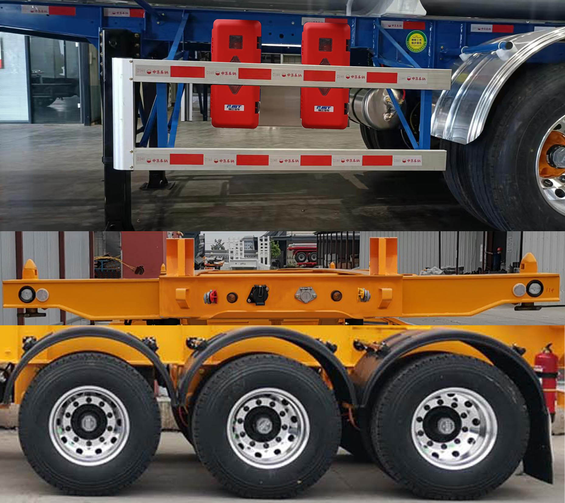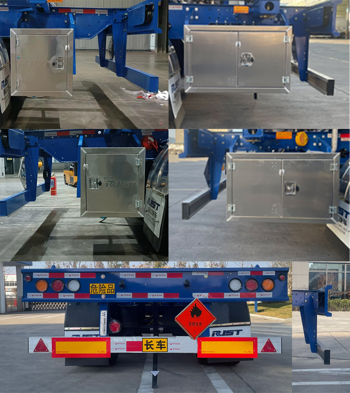 | 罐箱尺寸为30英尺.既可运输危险品罐箱,也可运输同尺寸集装箱或普通罐箱.危险货物运输车辆类型为FL,准运介质的**密度为1923.9千克/立方米.该车采用空气悬架.牵引销处车架总高度90mm/150mm/194mm,该车加装配灭火器,导静电接线盘及导电拖地带.选装灭火器存放架样式和位置,选装鹅颈结构,选装前横梁电气路布置,选装挡泥板,选装尾部无工具箱结构、有工具箱结构,选装工具箱样式,选装灭火器样式,选装锁头样式.EBS生产厂为采埃孚商用车系统(青岛)有限公司,浙江万安科技股份有限公司,克诺尔商用车系统企业管理(上海)有限公司,广州瑞立科密汽车电子股份有限公司,连云港市昌明电子科技有限公司,型号4801020640,VIE TEBS-Ⅰ,K11061XVXX,CM-TEBS,CUMID EBS 4S/2M.侧面防护装置材质为铝合金,连接方式为螺栓连接式;后下部防护装置材质为碳钢,连接方式为焊接式,离地高度为480mm,断面尺寸(mm):140×80.选装后下部防护装置材质为铝合金,连接方式为螺栓连接式,截面为槽型,断面尺寸(mm):150×60.牵引车采用适用于牵引危险品运输半挂车的牵引车. | |||