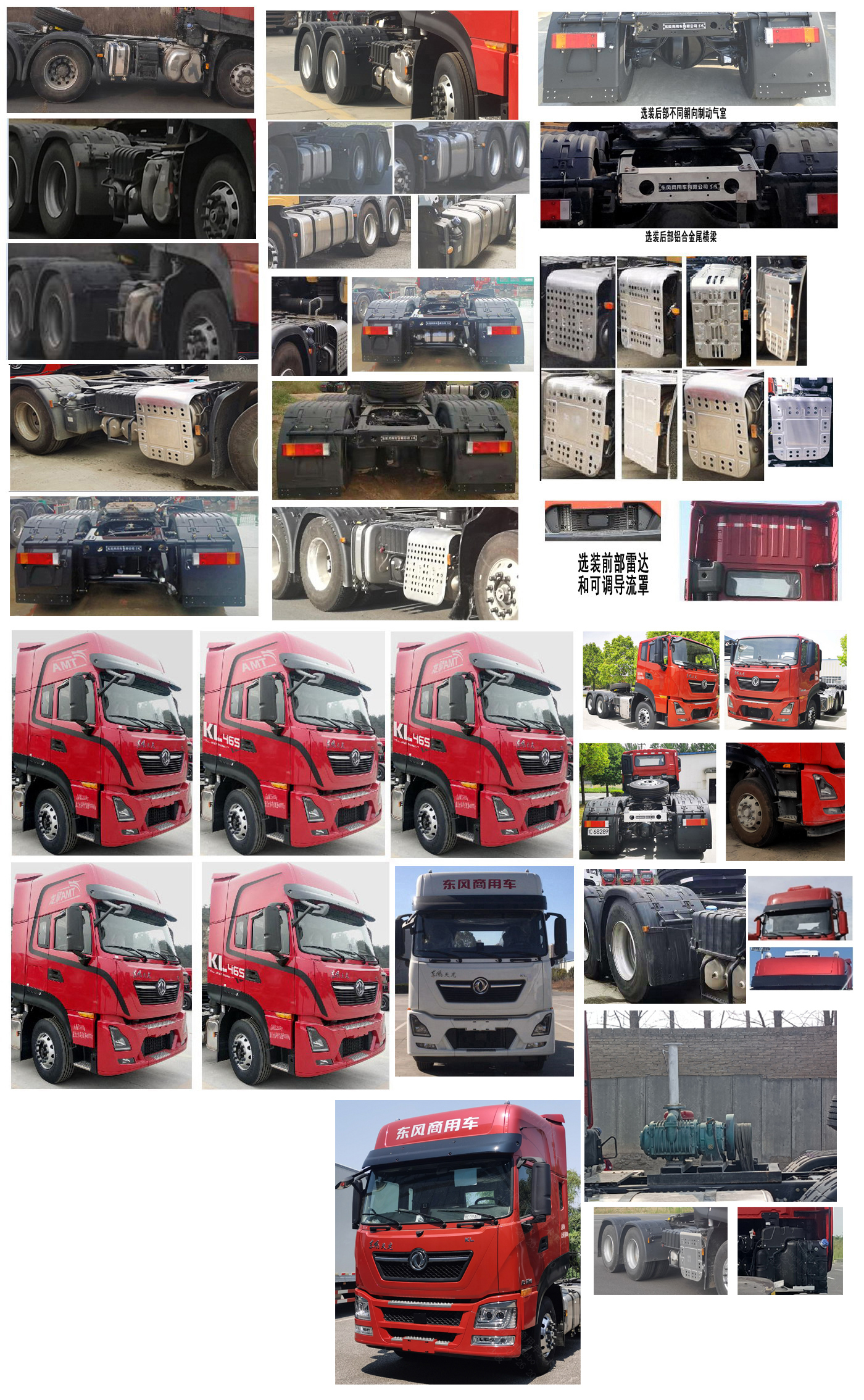 | 1、平顶驾驶室、侧裙板、导流罩、驾驶室顶部气喇叭、驾驶室前角扰流板为选装件;选装双侧油箱;选装前脸不同颜色分区照片;选装后部不同储气筒安装位置照片;选装不同材质铁质或铝合金储气筒;选装侧面电瓶框叠放或平放;选装驾驶室顶部厂家标识和侧面装饰拉花;选装不同布置EGP外观和EGP隔热罩样式;选装铝合金尾横梁和不同朝向制动气室,选装黑色后视镜;选装前部雷达和可调导流罩;选装干燥器不同布置及车门踏脚样式;选装顶置空调;选装后挡泥板支架不同样式;选装后部空压机;选装驻车暖风。选装不同容积及不同安装位置尿素罐;选装骨架不变仅前部灯具和进气格栅变化的驾驶室。2、ABS型号及生产厂家:ABS 8/东科克诺尔商用车制动系统(十堰)有限公司;ABS-E 4S/4M,采埃孚商用车系统(青岛)有限公司;VIE ABS/ESC-Ⅱ,浙江万安科技股份有限公司; 选装EBS(只配前盘制动器),EBS型号厂家:EBS5/东科克诺尔商用车制动系统(十堰)有限公司,110km/h车速仅配前盘制动器。3、安装具有卫星定位功能的行驶记录仪;4、发动机DDi11E465-60、DDi11E430-60、DDi13E520-60、DDi13E560-60、DDi13E580-60 净功率分别为337kw、318kw、375kw、403kw、418kw;对应油耗值均为38L/100km;5、整备质量9500对应准拖挂车总质量为39300kg;整备质量9290对应准拖挂车总质量为39510kg;整备质量8800对应准拖挂车总质量为40000kg。 | |||