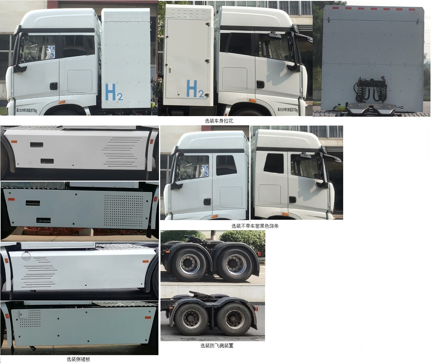 | 1.该产品是新能源车辆,类型为燃料电池;燃料电池类型:质子交换膜燃料电池;燃料电池生产企业:深圳市氢蓝时代动力科技有限公司;2.动力蓄电池种类:磷酸铁锂电池,生产企业:湖北亿纬动力有限公司(单体),湖北亿纬动力有限公司(总成);3.驱动电机型号:TZ420XS320K01,生产企业:山东众联能创动力科技有限公司,类型:永磁同步电机,额定功率:198kW,峰值功率:320kW;4.装备ABS,型号/生产企业:CM-EBS/广州瑞立科密汽车电子股份有限公司;5.安装具有卫星定位功能的行驶记录仪;装备限速装置,限速89km/h;该车型可选装ETC车载装置;允许外接充电;6.选装双根导静电橡胶拖地带,防飞溅装置,车身拉花,侧裙板,气瓶保护罩造型,不带车窗黑色饰条. | |||
