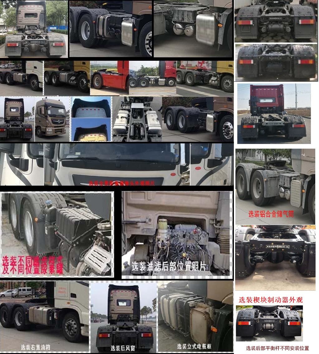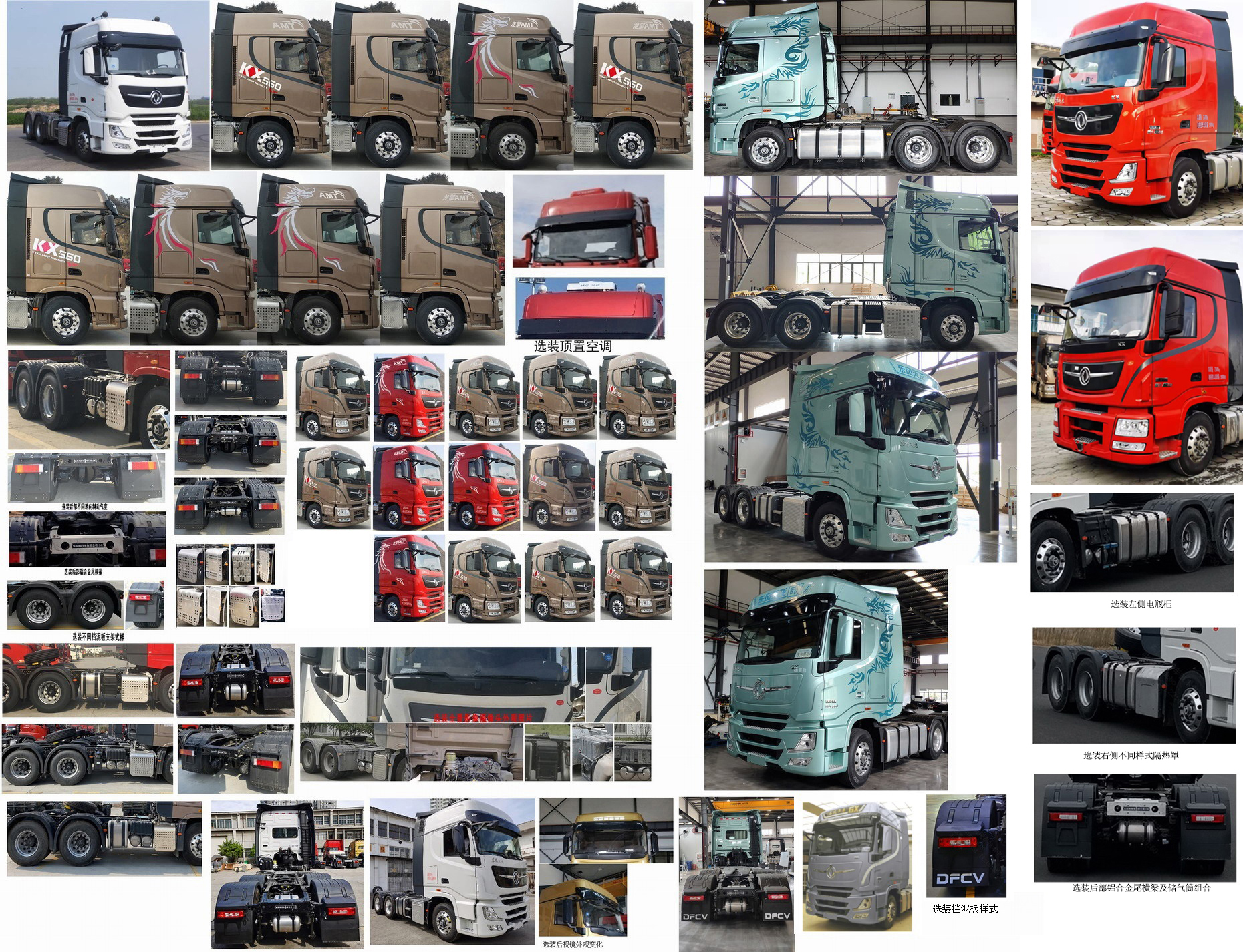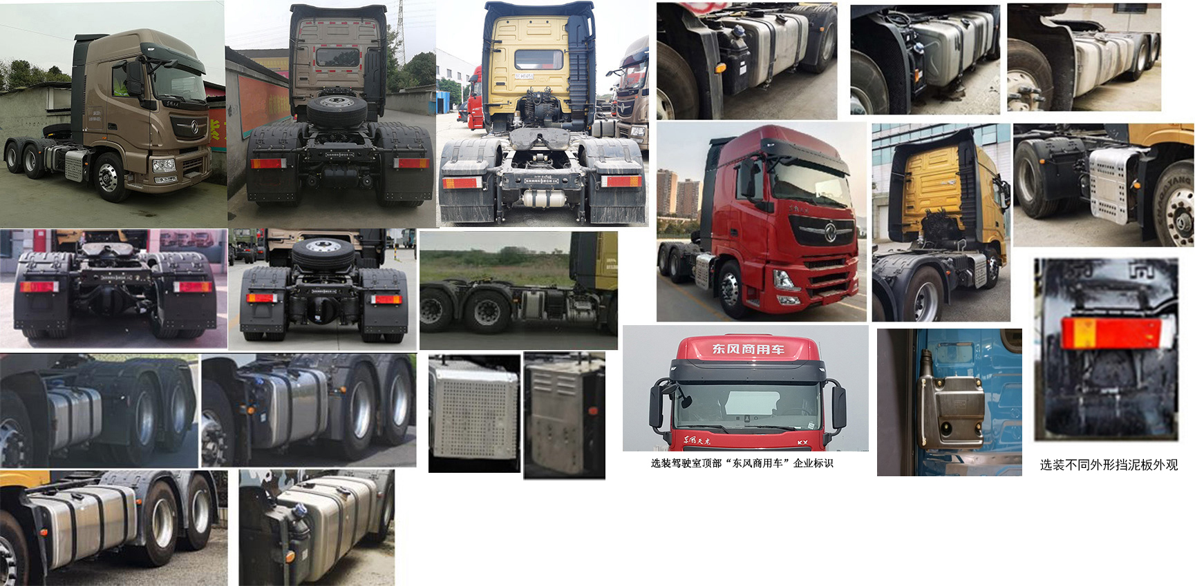 | 导流罩、气喇叭、侧裙板、驾驶室后窗为选装,选装导流罩支架固定式和可调式两种形式,选装双侧油箱或单侧油箱,选装EGP外罩盖,选装左侧或右侧电瓶框以及平铺或立式电瓶框,选装后部制动气室、选装不同电瓶框踏步样式及后部油滤不同安装位置、选装外观车贴、选装引气管造型,选装直角隔热罩,选装圆角挡泥板,选装顶置空调,选装选装后部平衡杆不同安装位置,选装后视镜外观变化,选装驾驶室顶部“东风商用车”企业标识。2、发动机Z14NS6B520、Z14NS6B560、Z14NS6B600、Z15NS6B660对应净功率为381kw、411kw、434kw、480kw,对应油耗值为38.5、38.5、38.5、38.5。3、ABS厂家及型号:东科克诺尔商用车制动系统(十堰)有限公司,ABS 8;EBS厂家型号;采埃孚商用车系统(青岛)有限公司,EBS3;东科克诺尔商用车制动系统(十堰)有限公司,EBS5。4、安装具有卫星定位功能的行驶记录仪。5、选装全景影像摄像头、燃油滤清器位置、铝合金贮气筒。6、选装后部储气筒不同布置位置。7、选装仅灯具外形调整及前部格栅造型变化的驾驶室外观。8.选装铝合金尾后横梁,选装楔块制动器外观,选装驾驶室顶部装饰拉花,选装尿素罐不同位置,选装右侧不同样式隔热罩,选装挡泥板不同样式,选装后部铝合金尾横梁及储气筒组合,选装驻车暖风。9.该车型可选装ETC车载装置。10.选装限速装置,限速89(km/h)。315/70R22.5轮胎仅与Z14NS6B520、Z14NS6B560、Z14NS6B600发动机匹配。 | |||