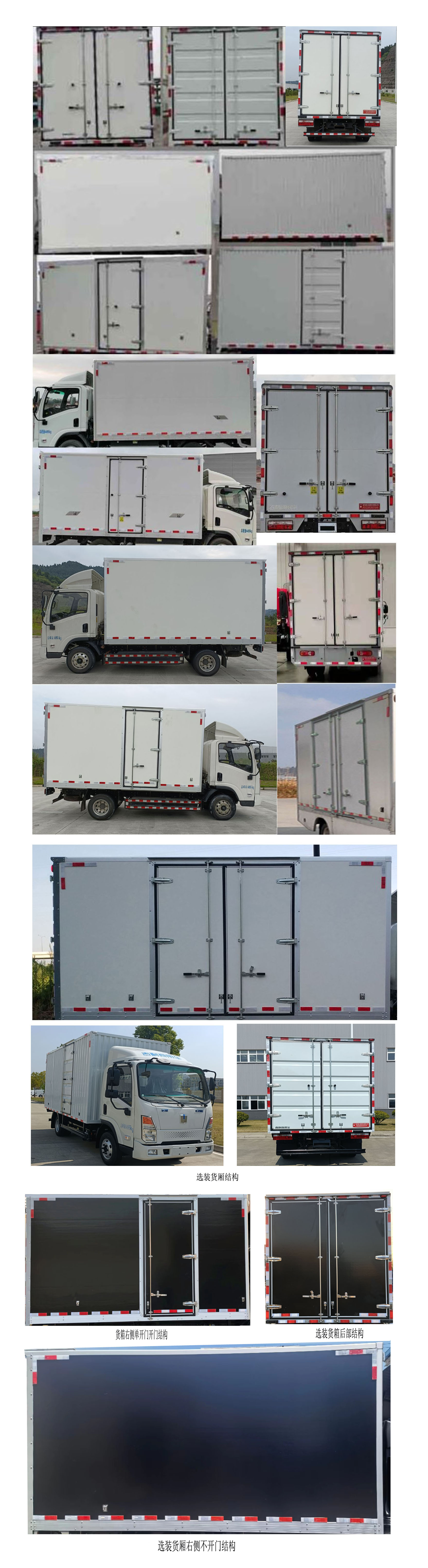 | 1.储能装置种类/生产企业:磷酸铁锂蓄电池/宁德时代新能源科技股份有限公司;2.驱动电机额定功率/峰值功率:65kW/120kW;3.ABS型号/生产企业:RL-1/瑞立集团瑞安汽车零部件有限公司;4.车厢顶部封闭不可开启;5.采用货厢裙部作侧防护(材质为玻纤增强聚丙烯蜂窝复合板),连接方式:铆接、螺栓连接,采用货厢裙部作后防护(材质为Q235),连接方式:焊接、螺栓连接.后部工作装置离地高度470mm、490mm;6.选装ETC;7.选装货厢不带侧门结构,选装不带内后视镜,选装前部“远程”、“G7E”字标,选装导流罩上“吉利商用车”字标,选装后部“吉利商用车”字标,选装驾驶室顶部不带前示廓灯,选装侧转向灯、后尾灯外形结构;8.选装垂直式尾板,搭配分体式侧防护栏及一体式后下部防护,侧防护栏装置材料为铝合金6061,连接方式:铆接、螺栓连接;后下部防护装置材料为铝合金6061,连接方式:铆接、螺栓连接,断面尺寸(mm):100×50,离地高度为443mm;尾板收起状态水平长度240mm,质量345kg;9.选装悬臂式尾板,搭配圆管型后下部防护装置,材料为Q235,连接方式:焊接,断面尺寸(mm):直径114,后下部防护装置离地高度430mm.尾板收起状态水平长度280mm,质量350kg;10.选装分体式侧防护,材料Q235,连接方式:螺栓连接;选装分体式后防护,材料Q235,连接方式:螺栓连接,后下部防护装置截面尺寸(mm):100×20.后下部防护装置离地高度400mm;11.选装货箱结构,选装液压尾板不同材质(铝质、钢质),选装侧双开门结构;12.货厢/栏板材质:底板(竹胶板,竹胶板+玻璃钢板),左侧板/右侧板/后侧板/前板/顶板(复合板);货厢/栏板材料截面厚度(mm):底板(12,13.5),左侧板/右侧板/后侧板/顶板/前板(20);13.货厢重量(kg):450,460,470,500,520,540,560,580,600;14.整备质量对应的配件配备情况:不包括备胎、灭火器、随车工具.15.货厢/栏板材质:底板(Q700),左侧板/右侧板/后侧板/前板(Q700),顶板(复合板);货厢/栏板材料截面厚度(mm):底板(1.2),左侧板/右侧板/后侧板/前板(0.7),顶板(15).16.选装驾驶室前围结构.17.选装货箱右侧单开门结构,选装货厢右侧不开门结构, 选装货箱后部结构.18.货厢/栏板材质:前板(木质复合板),顶板(保温板). | |||