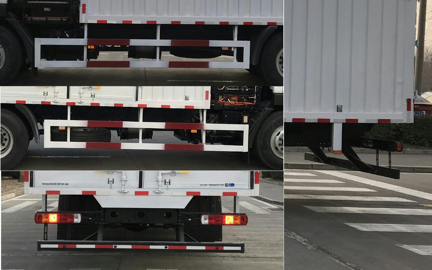 | 1. ABS型号/生产企业:ABS-E/采埃孚商用车系统(青岛)有限公司;2.安装具有卫星定位功能的行驶记录仪;3.电池种类/生产企业:磷酸铁锂电池/宁德时代新能源科技股份有限公司;4.电机型号/生产企业:FTTBP380A/北汽福田汽车股份有限公司,额定功率:253kW,峰值功率:380kW;5.货箱顶部封闭,不可开启;6.后防护材料为510L-6.0-GB/T 709,侧防护材料为热板A-3.0-GB/T 709,连接方式均为螺栓连接,后防护断面尺寸120mm×60mm,后防护离地高度465mm;7.该车型可选装ETC车载装置. | |||