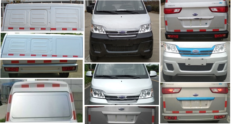 | 选装安全气囊、外后视镜造型、刚性板式隔离装置造型、轮辋造型、倒车雷达、侧盲窗造型、后盲窗造型、银色和蓝色后牌照灯护板、银色和蓝色前格栅,载货区选装PVC地毯、铝制地板和PVC耐磨地毯。储能装置种类为镍钴锰酸锂蓄电池,单体生产企业为星恒电源股份有限公司,总成生产企业为安徽天鑫能源科技有限公司。驾驶区与货舱之间用刚性板式隔离装置有效隔离,货舱部分使用金属盲窗。发动机型号为驱动电机型号,功率为驱动电机峰值功率。ABS系统生产企业为浙江亚太机电股份有限公司,对应型号为APG3550500G。 | |||