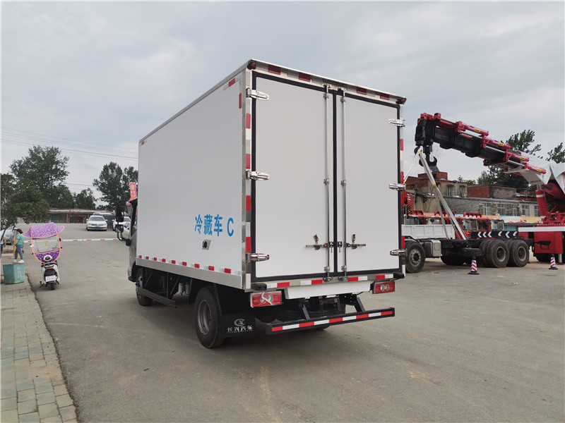 欧马可S1 冷藏车,整车型号:BJ5048XLC-F3,底盘型号:BJ1048V9JD6-F3,新款1880mm单排驾驶室,5档变速箱,康明斯F2.8NS6B1315发动机,130马力,7.00R16钢丝胎、空调、车联网终端、中控锁、电动门窗、遥控钥匙、巡航、MP3、多功能方向盘、刹车自调臂、可调大灯,整车尺寸:5995×2340×3220(mm),箱体内尺寸:4080×2**×2**(mm),箱内容积18个立方,箱体材质:内外玻璃钢,8cm高密度保温板,底板防滑花纹铝板,后双开门,加装单侧门。