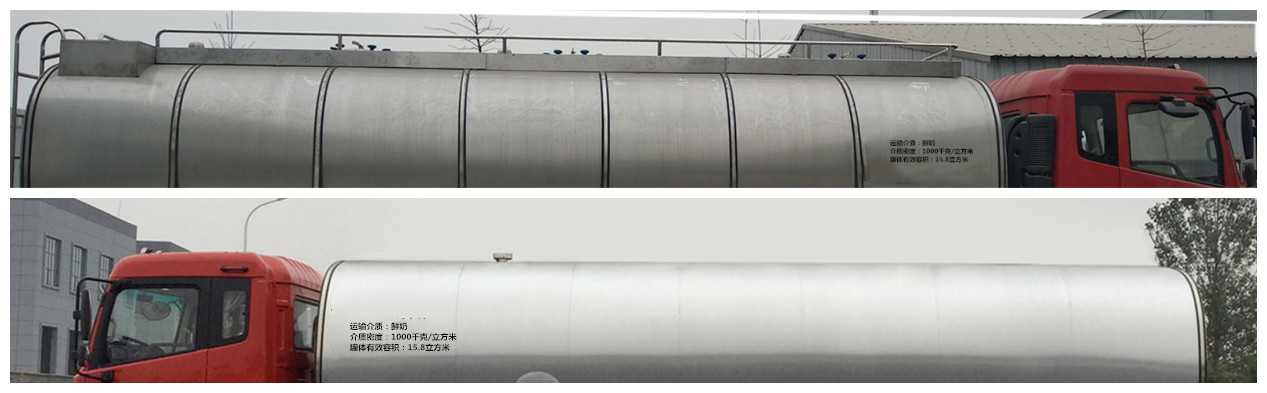 | 罐体总容量15.8立方米,有效容积为:15立方米,罐体外部尺寸为:长 7830mm,长轴: 2360mm,短轴: 1680 mm。运输介质为: 鲜奶, 密度:1000千克/立方米.罐体含保温层,层厚120mm。侧防护材料:铝合金5083,后防护材料:Q235,连接方式均为:螺栓连接。后防护断面尺寸:50mm×120mm。后防护离地高度:470mm。随底盘选装驾驶室,选装平顶驾驶室时,整车高度3210mm,选装罐顶护栏样式及无护栏样式。ABS生产厂家/型号:浙江万安科技股份有限公司/VIE ABS-II;该车安装具有卫星定位功能的行驶记录仪。只选用前悬/后悬,1332/2000的底盘,油耗值32.0对应发动机CA6DH1-24E6。 | |||