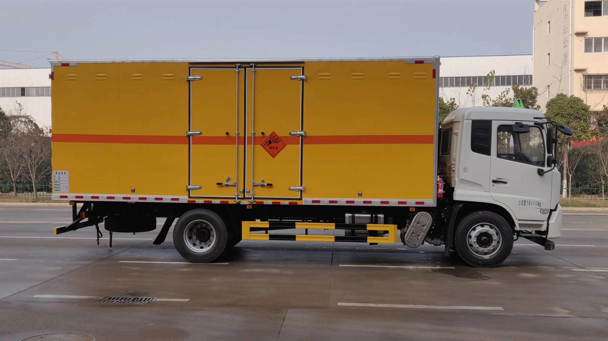 厢体顶部封闭,不可开启;随底盘选装驾驶室;厢体侧面选装开门型式及位置或不带侧开门;用于运输具有**容器(瓶)包装的:黑火药,压缩黑火药,电(非电)引爆雷管,爆破用,专用烟火制品,无烟火药,糊状火药,爆破炸药,导爆索,软的,点燃导火索,射弹,带有爆炸装药,聚能装药,不带雷管,聚能炸药,不带雷管,非电引爆雷管组件,爆破用,油井用弹药筒,固态推进剂,动力装置用弹药筒,商品爆炸装药,不带雷管.运送爆炸品的项号:1.1 D,1.1 D,1.1B,1.1B,1.1G ,1.1C,1.3C,1.1 D,1.1 D,1.4G,1.1D,1.1 D,1.1B,1.1B,1.3C,1.1C,1.3C,1.1D;运送危险货物车辆的类型:EX/Ⅲ型车辆;仅采用前轮盘式制动器,前置排气管,子午线轮胎,限速装置的底盘,限速80km/h;转向轮安装爆胎应急防护装置;后轴采用空气悬架;发动机/油耗申报值(L/**km)对应关系为:B6.2NS6B210/25.9,DDi50E190-60/25.9;该车安装具有卫星定位功能的行驶记录仪;ABS型号/生产厂家:3631010-C2000/东科克诺尔商用车制动系统(十堰)有限公司,EBS5/东科克诺尔商用车制动系统(十堰)有限公司,ABS 8/东科克诺尔商用车制动系统(十堰)有限公司;侧面防护及后下部防护装置材料材质:Q235,连接方式:焊接加螺栓连接;后下部防护装置断面尺寸(宽×高):50×120(mm),离地高度:495mm. |