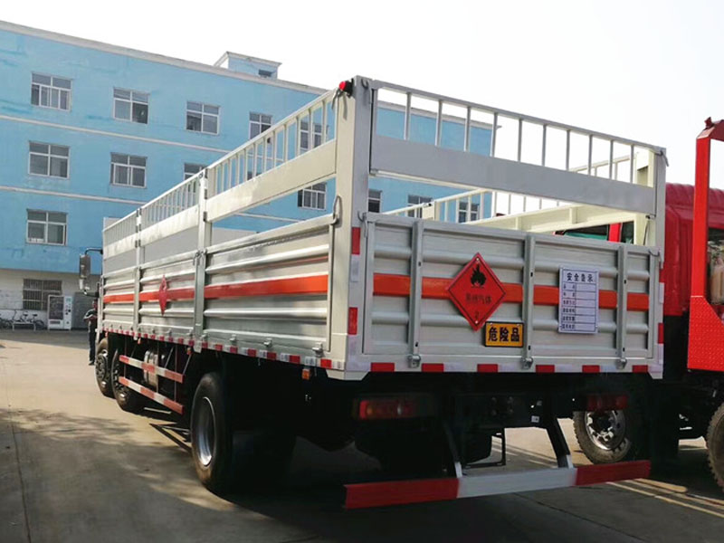 该车为危险品货物运输车,用于运输具有**容器(瓶)包装的易燃气体(罐(瓶)装压缩氢、液化石油气),类项号为2.1,和非易燃无毒气体(罐(瓶)装二氧化碳,氧气,氮气,氩气),类项号为2.2.选装货箱侧板、后门结构;选装箱体结构.侧防护:材质Q235,螺栓连接;后下防护:材质Q235,螺栓连接,断面尺寸120X60mm,离地高度540mm;安装具有卫星定位功能的行驶记录仪.装有ABS,ABS型号:3631010-C2000,生产厂家:东科克诺尔商用车制动系统(十堰)有限公司.选装前雾灯,驾驶室顶部装饰灯为选装件.仅选用前盘式制动器,前置排气管,子午线轮胎,限速装置的底盘,限速80km/h. |