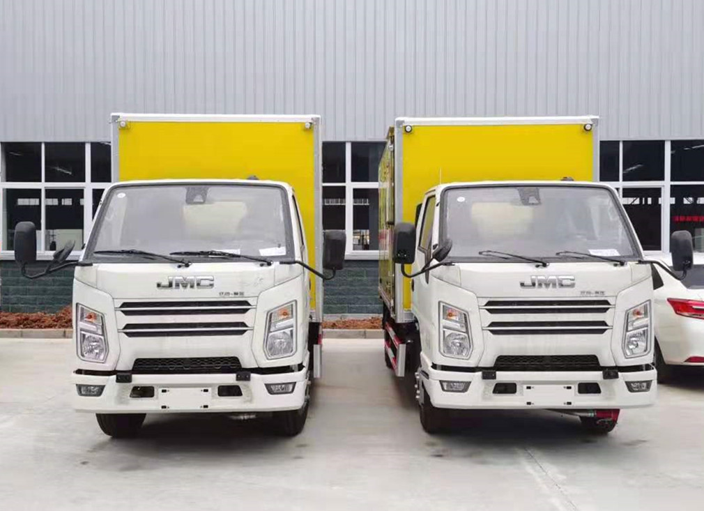 随底盘选装驾驶室;该车为危险品运输车,类型为EX/Ⅲ;厢体顶部密封,不可开启,厢体两侧选装不同形式侧开门及开门位置或不带侧门,选装瓦楞板结构.用于运输具有**容器(瓶)包装的:黑火药,压缩黑火药,电(非电)引爆雷管,爆破用,专用烟火制品,无烟火药,糊状火药,爆破炸药,导爆索,软的,点燃导火索,射弹,带有爆炸装药,聚能装药,不带雷管,聚能炸药,不带雷管,非电引爆雷管组件,爆破用,油井用弹药筒,固态推进剂,动力装置用弹药筒,商品爆炸装药,不带雷管.运送爆炸品的项号: 1.1 D,1.1 D,1.1B,1.1B,1.1G ,1.1C,1.3C,1.1 D,1.1 D,1.4G,1.1D,1.1 D,1.1B,1.1B,1.3C,1.1C,1.3C,1.1D 。侧/后防护材料为Q235,连接方式:焊接连接,后防护截面尺寸(mm):**×50,离地高度450mm。该车仅使用排气管前置、前轮为盘式制动器、装配子午线轮胎的底盘,转向轮安装轮胎爆胎应急防护装置,安装导静电带;该车装有ABS,ABS系统型号:APG3550500A,ABS系统生产厂家:浙江亚太机电股份有限公司;该车安装具有卫星定位功能的行驶记录仪,该车装配有限速装置,限速80km/h。发动机型号对应油耗申报值:JX4D30B6H/10.82L/**km,JX4D30A6H/11.4L/**km。 |