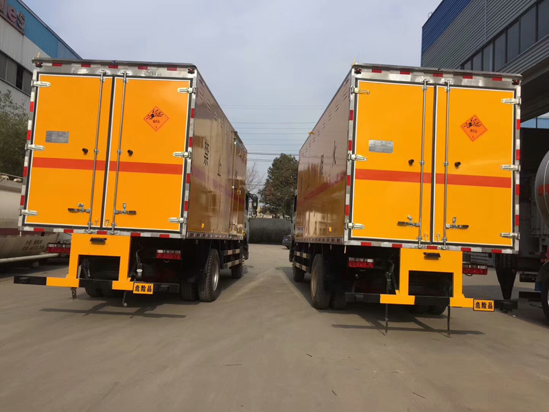 厢体顶部封闭,不可开启。该车为危险品运输车。随底盘选装驾驶室.前面罩,前组合灯具.运输品名:黑火药,压缩黑火药,炸药,雷管,类项号:1.1B,1.1D,1.1G,1.2G,1.3G.厢体侧面板选装开百叶窗,选装不带侧门,侧门型式及位置;厢体颜色可变化,文字喷涂位置可变化.侧面及后下部防护装置材料为Q235,与车架采用焊接连接.后下部防护装置断面尺寸(mm):120×50,离地高度:520mm。选装液压升降尾板,选装液压尾板时收起状态的水平长度为300mm,仅采用排气管前置、子午胎,限速装置,**制动装置和前盘制动器的底盘;限速80km/h.安装具有卫星定位功能的行驶记录仪; ABS系统生产厂家,型号 :焦作博瑞克**技术有限公司,J ABS.安装具有卫星定位功能的行驶记录仪.仅采用10.00R20 18PR,295/80R22.5 16/18PR轮胎。 |