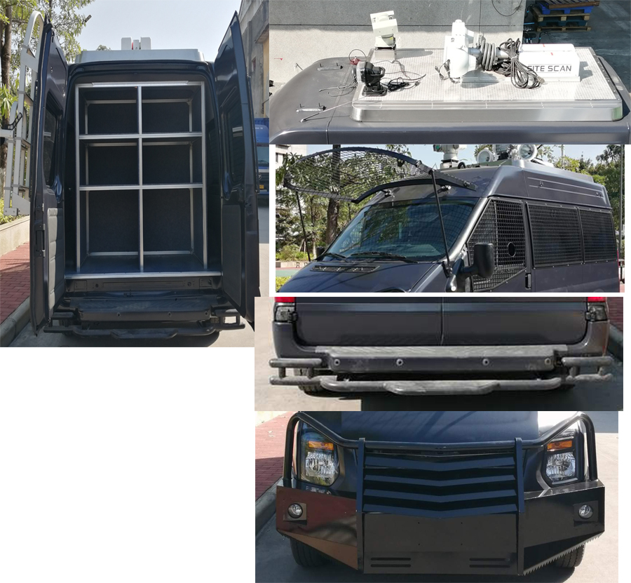 | 1,该车主要用于在各种工况下的现场数据收集,数据传输,数据接收,防暴运兵,巡逻,处突,装备运输,宣传广播等功能;2,专用装置:车顶部安装有车顶平台,云台摄像机,搜索灯,宣传广播,升降照明灯,车辆前挡风玻璃,左右侧窗都安装有防暴钢网,车辆前部有防撞保险杠,车辆后部有后保险杠和后踏步,车辆尾部安装有储物层柜,用于存放突装备和巡逻装备,车尾门安装有爬梯3,前挡风钢网,左右侧窗钢网及前部防撞保险杠,后部保险杠可以作为选装件进行选装.4,发动机**净功率:101kW;5,ECU限速(限**车速100km/h).ABS系统**器型号: 6C11 2M110 A*,生产厂家:博世汽车部件(苏州)有限公司.6,选装前部防撞保险杠时,车长增加170mm,即原车长4963mm时,则整车长5133mm.选装外观及内部装置布局照片. | |||