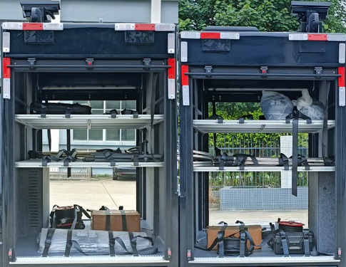 | 车厢顶部封闭且不可开启;专用装置:用于存放防暴头盔盾牌等器材的装备架、防爆球、强光照明灯、摄像机、防暴器材等,主要用于处置突发性事件的排爆工作;选装防爆球外观;随底盘选装ETC车载装置;车顶强光照明灯仅在驻车状态使用,行车状态不可用;选装不带摄像机时整车高2920,选装不带强光照明灯时整车高2690;侧面防护为裙边结构,离地高295;后下防护为裙边结构,离地高320mm;ABS型号:APG3550500G,ABS生产企业:浙江亚太机电股份有限公司;JX493ZLQ6发动机**净功率83kW,JX493ZLQ6B发动机**净功率88kW。 | |||