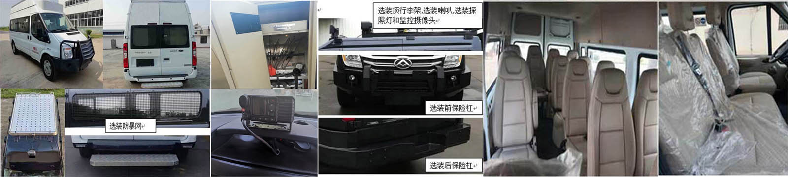 | ABS型号:6C11 2M110 A*或CC11 2C405 A*或EV 7021;ABS生产企业:博世汽车部件(苏州)有限公司;发动机净功率值:101kw;选装前后保险杠时车长为5995mm,对应前后悬为933/1312mm选装后踏板时车长为6150mm,对应前后悬为933/1467mm,选装车顶平台时高为2720mm,选装车顶围栏时高为2820mm,选装照明灯,伸缩梯固定装置时高为2970mm,选装防暴网,器材柜,后爬梯,顶行李架,喇叭,探照灯,监控摄像头;专用功能及装置:超短波电台,器材柜,主要用于防爆;该车装备行驶记录仪,选装直接供电式ETC装置.随底盘选装:前大灯,后尾灯,前脸造型,号牌板支架,车门两侧不带英文装饰条,尾部外部标识,轮辋,车身同色后视镜,车身同色门把手及钥匙孔,侧推拉窗. | |||