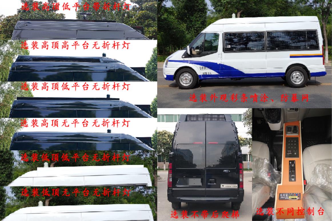| 该车配备云台一体机,器材柜等专用装置,主要用于预防和处置各种群体性事件,打击恐怖活动,具有一定的自身防护能力的专用车辆.该车随原车选装低顶状态,该车高顶高平台带折杆灯时高度为3200mm,该车高顶低平台带折杆灯时高度为3040mm,高顶高平台无折杆灯时高度为2990mm,高顶低平台无折杆灯时高度为2830mm,高顶无平台时高度为2780mm,低顶低平台时高度为2640mm,低顶无平台时高度为2560mm.4-6座时整备质量为2550kg,7-9座时整备质量为2600kg.选装不带后部爬梯.选装不同**台.选装防暴网.选装顶置式空调.该车型可选装直接供电式ETC车载装置.该车配备汽车事件数据记录系统(EDR).ABS型号/生产厂:6C11 2M110 A*或CC112C405 A*/博世汽车部件(苏州)有限公司.发动机**净功率101kW. | |||