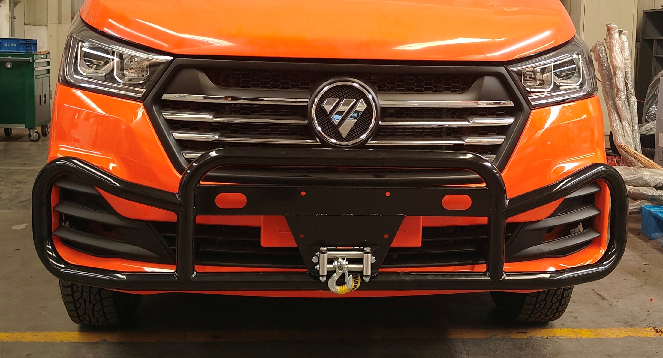 | 1.该车型加装前保险杠及绞盘, 加装行李架,配备器械存放柜等专用装置。该车主要用于特种人员的运送。2.随底盘选装天窗、铝轮、轮罩、后照地镜、后雨刮、后洗涤器、后除霜、倒车雷达、前雾灯,侧窗可选推拉式、LOGO 标识.。3.可选装不同结构行李架。4.ABS**器型号:YF8,ABS**器生产企业:武汉元丰汽车电控系统股份有限公司;5.发动机4K22D4M**净功率为110kW,发动机对应油耗值(WLTC)为10.80(L/100km);6.可选装ETC车载装置;7.该车配备汽车事件数据记录系统(EDR)。7.车顶外覆盖件**离地高度2040mm. | |||